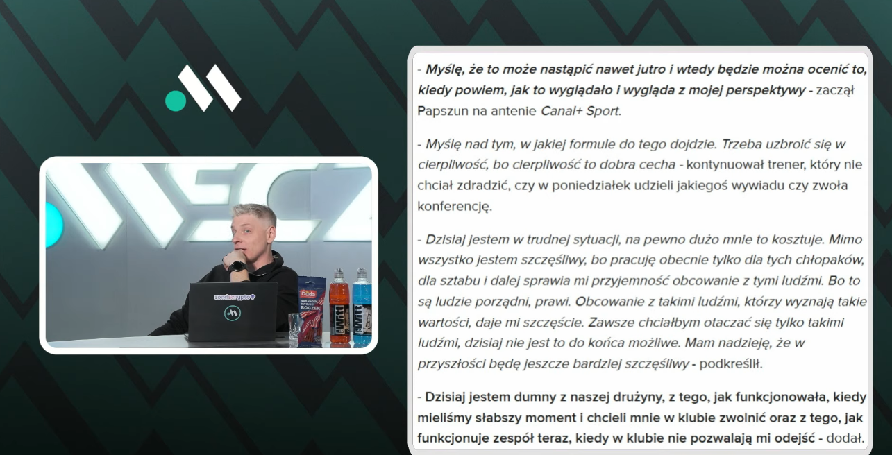 Na transmisji "Meczyków" pojawił się dłuższy cytat słów Marka Papszuna: